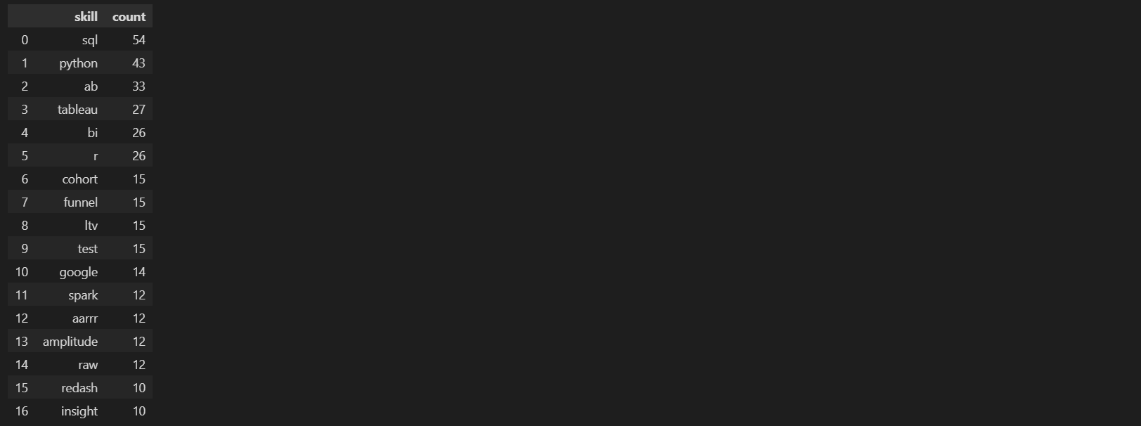 df_count['skill'] = df_count.index # index로 들어있는 skill들을 컬럼으로 추가