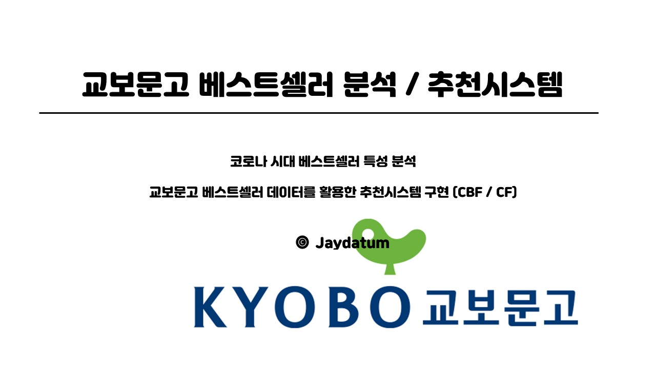 | [교보문고 베스트셀러 분석 / 추천시스템] 1. 프로젝트 기획 (0) | 2022.07.21 |