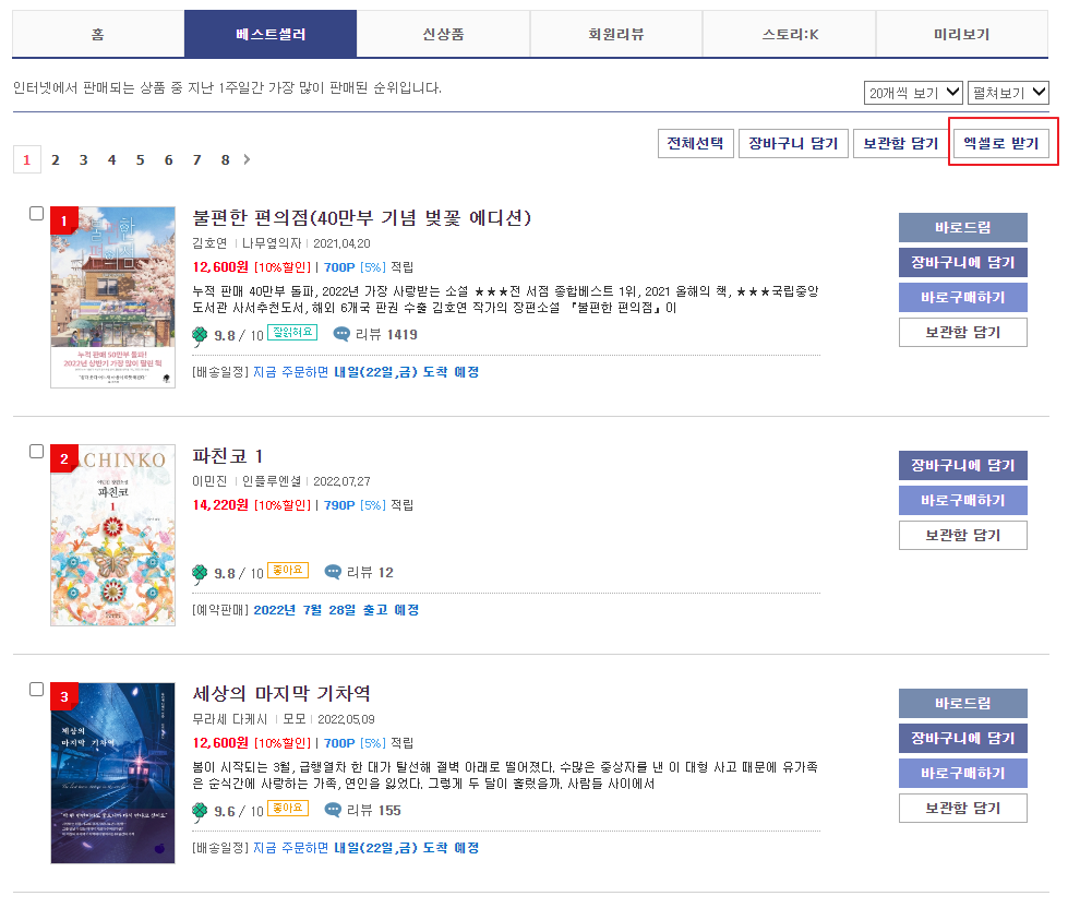 교보문고는 분야별 베스트셀러 목록을 excel 파일로 제공한다. 따라서 베스트셀러의 데이터를 일일이 크롤링 해야하는 수고를 덜어 작업이 훨씬 순조로웠다.