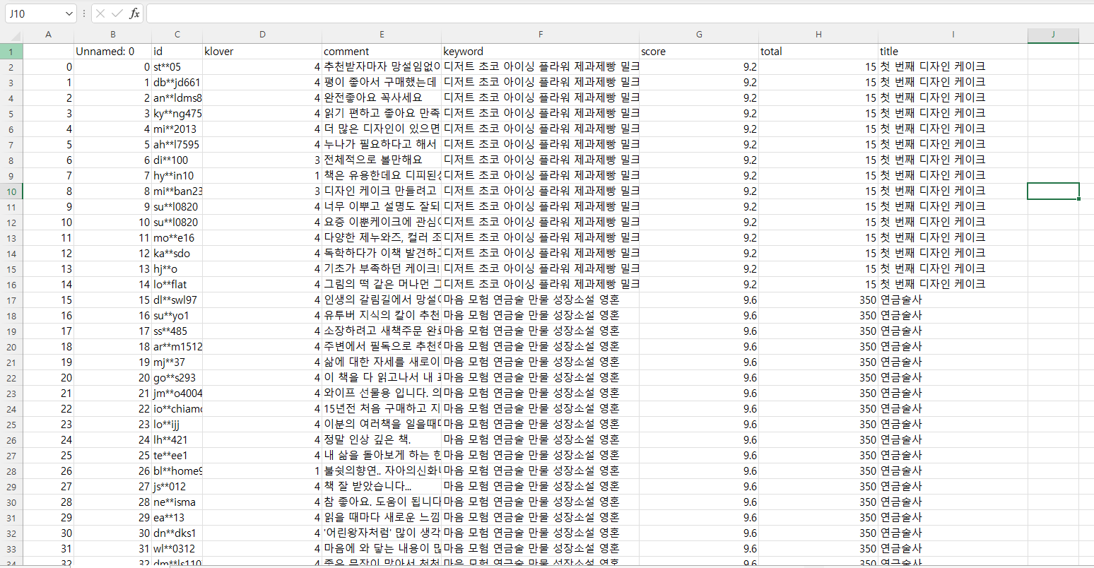 print(j,'th error:',title) # 에러 발생할 경우 해당 서적 출력