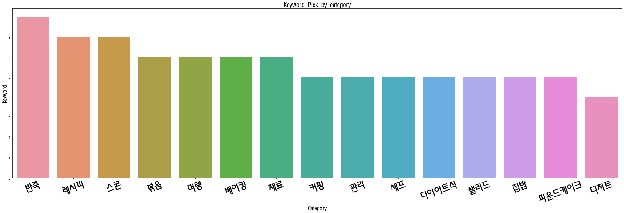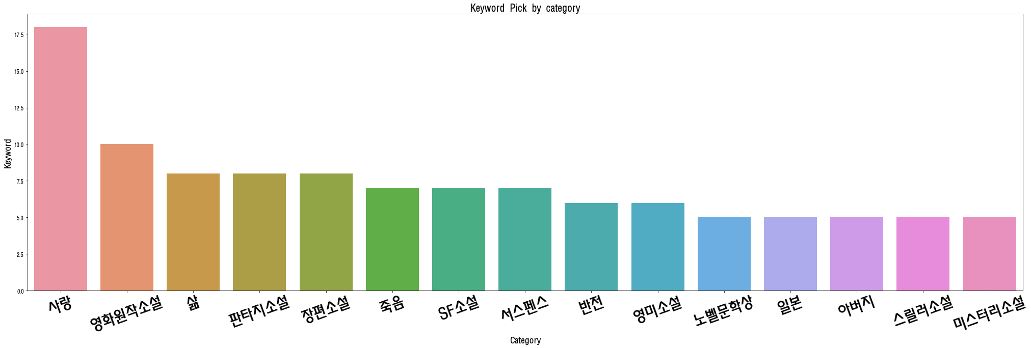 bar.set_title('Keyword Pick by category', fontsize=18)
