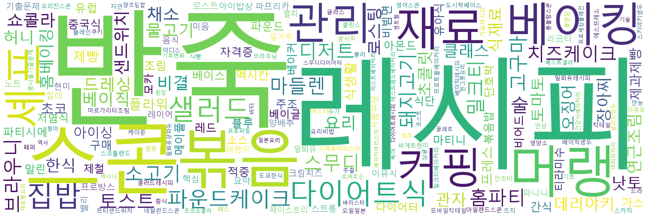 코로나 시기에 실내에서 할 수 있는 취미를 찾으면서 홈 베이킹에 대한 관심이 높아졌다. 이전에는 주로 레시피에 관한 것이었다면 최근의 트렌드인 홈 베이킹 및 디저트 만들기가 빈출되었다.