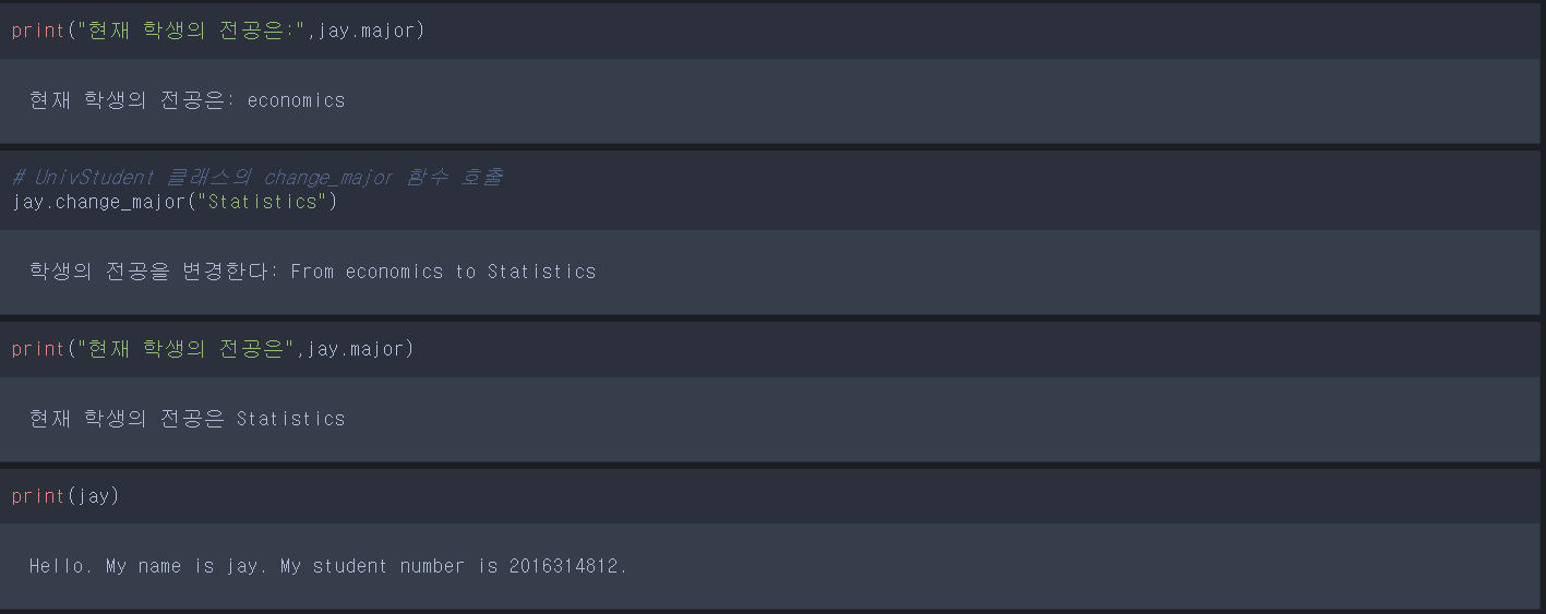 print("학생의 전공을 변경한다: From %s to %s" % (self.major,new_major))