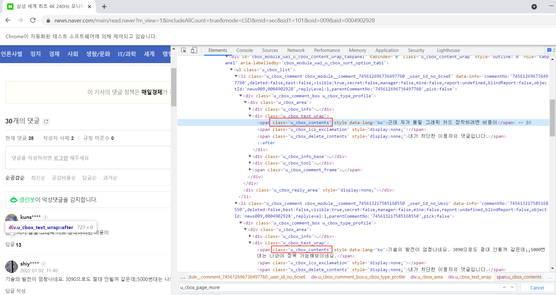 driver.find_element_by_css_selector(".u_cbox_page_more").click() # 더보기 버튼 클릭