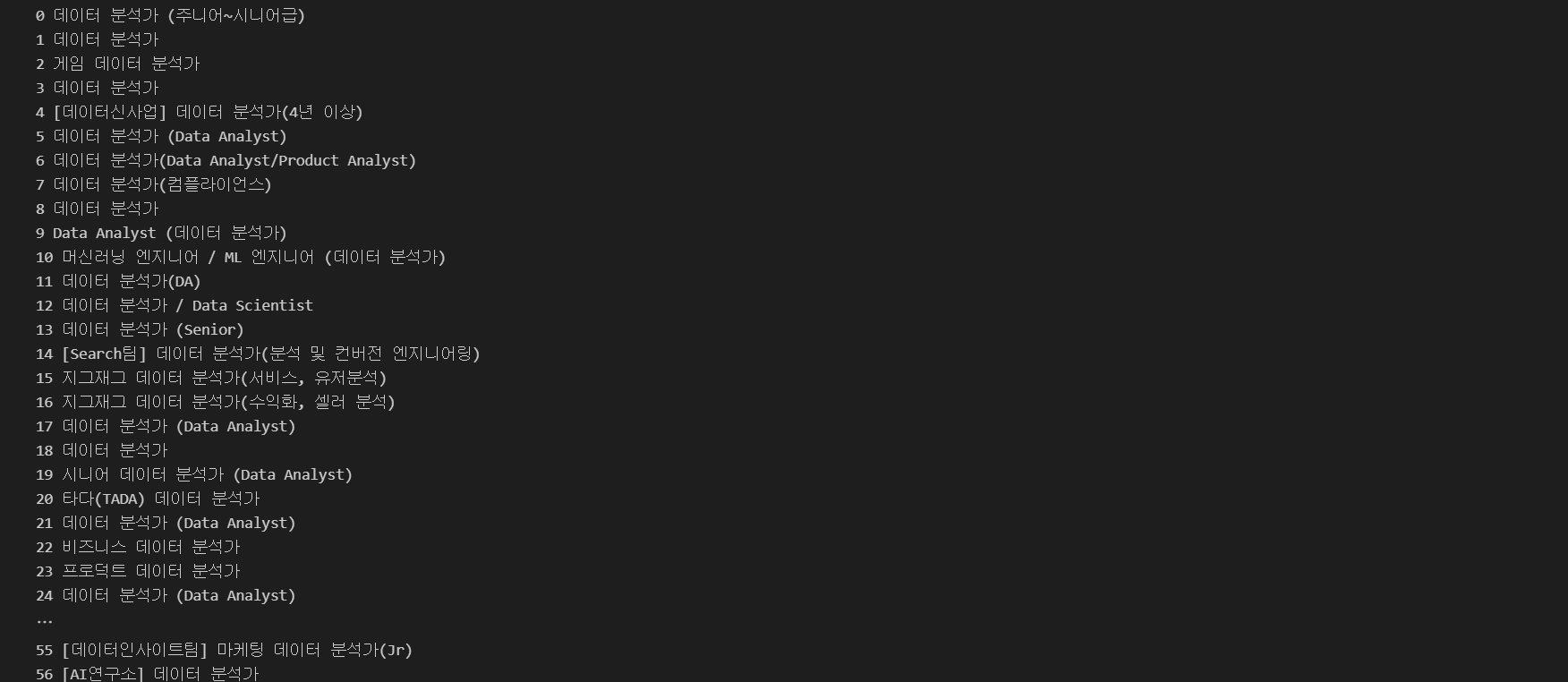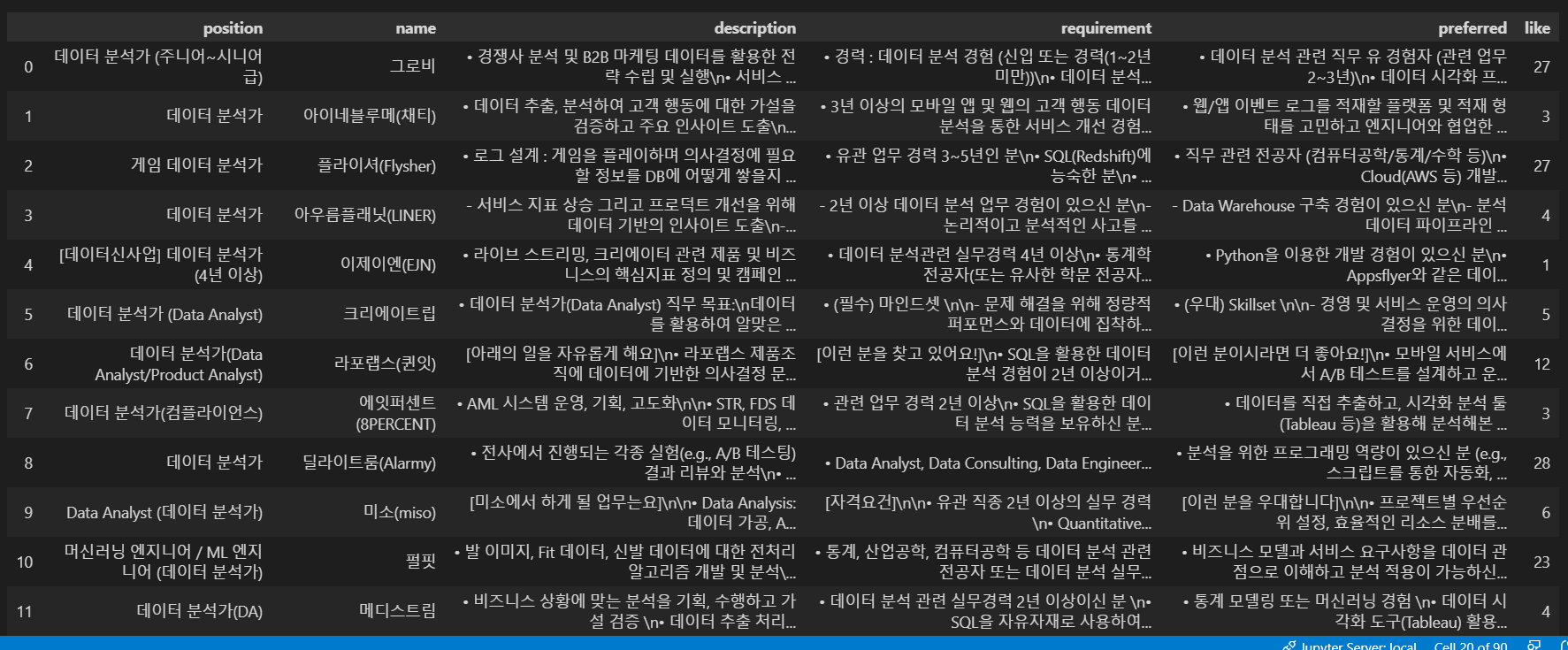 - 이 후 자격요건, 우대사항 모두 같은 방식으로 경로를 지정해 크롤링이 성공적인지 test해본다.